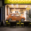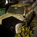 Photographing at night I prefer using a tripod and working with ambient light from streetlamps or lights from passing cars.